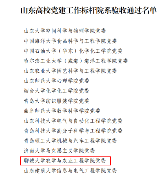 日前,山东省委教育工委公布了第二批山东高校党建“双创”培育创建工作验收通过名单,英国365上市公司党委(原365上市公司农学与农业工程学院党委)圆满完成“山东高校党建工作标杆院系”培育创建任务,通过验收。