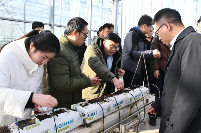 第一站,全体党员走进耿店村现代化农业高科技示范项目——山东绿隆农业科技示范园,园区负责人向大家详细展示了园区所引进的前沿技术及其广阔的应用前景,随后亲自引领大家深入探索草莓、西红柿、水果黄瓜等作物的产业智能温室管理系统。参观过程中,大家了解了现代农业采摘的新模式、先进的无土栽培技术及其配套设备、高效的节水灌溉系统以及一系列现代化的农业机械设备等创新科技。