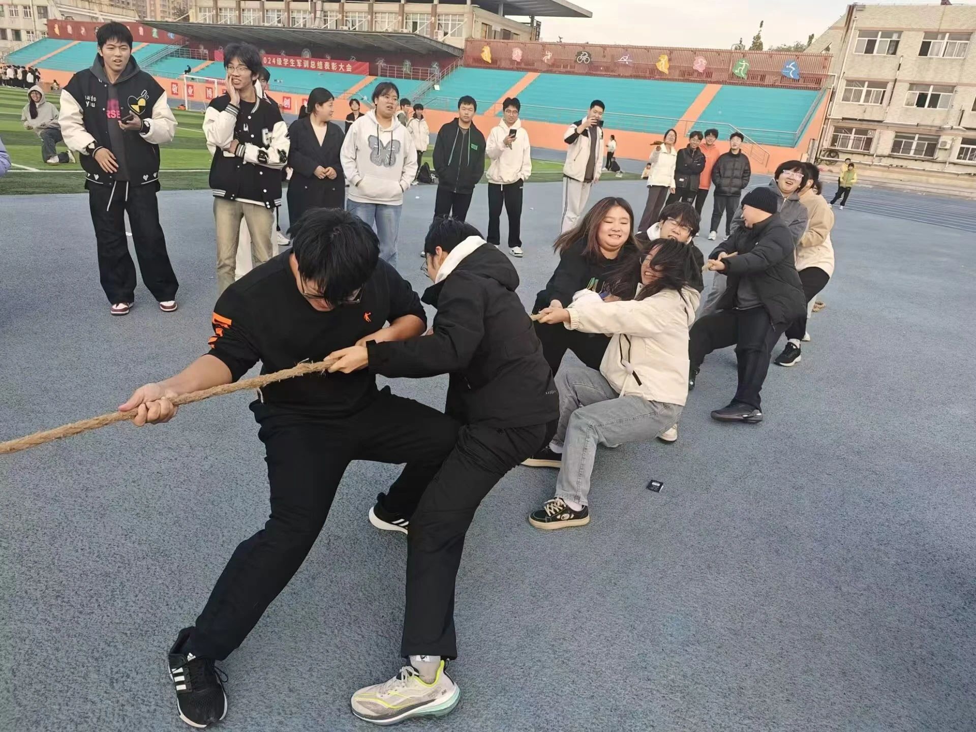 活动伊始,14支队伍整装待发,复盘战术,严阵以待。参赛的每一支队伍、每一位同学都在赛场上挥洒汗水,奋力拼搏。面对体力与毅力的双重挑战,他们拿出了坚韧不拔的意志和永不言弃的精神,展现了独属于聊大学子的精神与风采。每一支队伍在赛前制定了多种战略,例如二班采用了第二节拍发力和第三节拍发力相交替的方案,总能打对手一个措手不及。 经过一场场激烈的角逐,现场的氛围被彻底点燃,观众们也为之加油喝彩,这既是对同学们的鼓舞,更是对团结拼搏精神的赞叹。在这场拔河比赛中,每支队伍都展现出了永不服输的坚韧气势,将团结的意志都凝聚在了这根小小的拔河绳上。他们发扬着团队协作精神,不畏强敌,奋勇拼搏。最终,比赛圆满落幕,二班荣获第一名,八班获得第二名,七班和十班并列第三名。