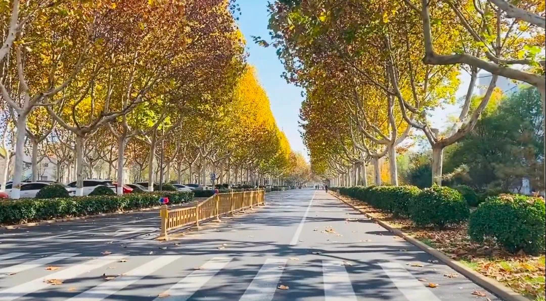 在众多参赛者中,王兆冉同学的作品脱颖而出:从欢快地在草地上蹦跳的小鸟,到铺满金黄银杏叶的“黄金通道”,再到点缀着梧桐的教学楼畔;校园秋冬的美景逐一被镜头温柔捕捉,收入视频中。此外来自新疆的哈丽米热同学的作品也令人眼前一亮。作品中,她用骑行的方式记录自己一日的自然之旅,通过光影的变换体现出秋冬特有的浪漫,通过色彩的搭配和别样的剪裁展现出秋冬蕴含的诗意。清晨第一抹橘红色的太阳、正午阳光下金黄闪烁的银杏、夜晚操场手牵手的恋人等意象的运用,隔着屏幕就让人感受到生命的沉稳有力和作者内心的温暖平静。