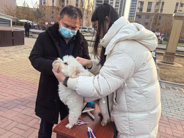 本次活动邀请到聊城心仪动物医院的李学善院长坐诊,以“宠物义诊送关怀,共祝人宠健康家”为主题,展开现场义诊和宠物健康知识宣传工作,为居民们提供宠物健康咨询服务。活动伊始,志愿者们为宠物们提供了健康检查服务,他们精心为宠物修剪指甲,细心清理耳道、测量体温,确保宠物的舒适与健康。养宠并非仅仅为其是提供食物与住所,而是涉及多方面的精细护理,李院长还以深入浅出、通俗易懂的语言方式向居民们讲传授了宠物养护的关键要点。李院长为参与活动的宠物们进行了免费的健康检查,针对不同宠物的健康情况,李院长详细记录宠物的健康信息,耐心解答居民们在照顾过程中遇到的新问题,针对不同情况提供专业的指导。