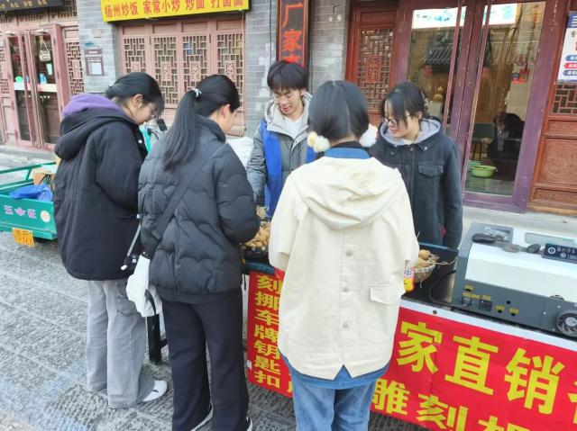 为了提升大学生对互联网科技的应用能力,并加深对地方经济发展的理解,1月17日,“智慧兴农”服务队于聊城市东昌湖风景区举办“直播卖货vs线下卖货”调研活动。