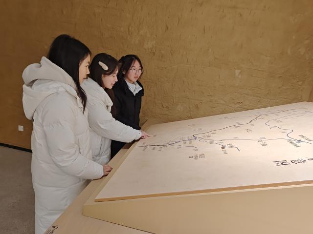 活动伊始,讲解员带领同学们走进“历史变迁”展厅,通过丰富的文物、详实史料以及生动的多媒体影像,大家系统地了解到大运河从春秋开凿,历经隋唐拓展、明清繁荣,再到近现代变迁的漫长历程。生动的讲解不仅让大家深刻认识到运河在中国历史发展进程中的关键作用,更让同学们感受到中华民族坚韧不拔、勇于开拓的伟大精神。同学们纷纷表示,运河博物馆承载着深厚的历史记忆,是传承文化的重要载体,作为新时代大学生,有责任、有义务珍视这份珍贵遗产,让运河文化在新时代绽放光彩。在“水工科技”展厅,多媒体沙盘、声光影像的巧妙设计,将古代运河水工科技生动呈现。大学生们通过互动体验,深入了解船只过闸原理,以及运河河道水位变化、水流走向等科学奥秘。这不仅是一场科技与历史的碰撞,更是对古代劳动人民智慧的致敬。同学们在惊叹之余,更深刻体会到科技创新在推动社会进步中的重要作用,激发了大家投身科技创新的热情。“运河风情”展厅则是一幅生动的民俗画卷。一幅长达30余米的《东昌盛景图》,栩栩如生地再现了聊城段运河的船闸、桥梁、会馆、码头和商铺,展现出昔日运河的繁华盛景。同时,展厅内还展示了丰富多彩的运河民俗文化,如运河号子、民间工艺等,让同学们领略到运河文化的多元与包容。这些民俗文化不仅是运河沿岸人民生活的写照,更是中华民族文化多样性的体现。