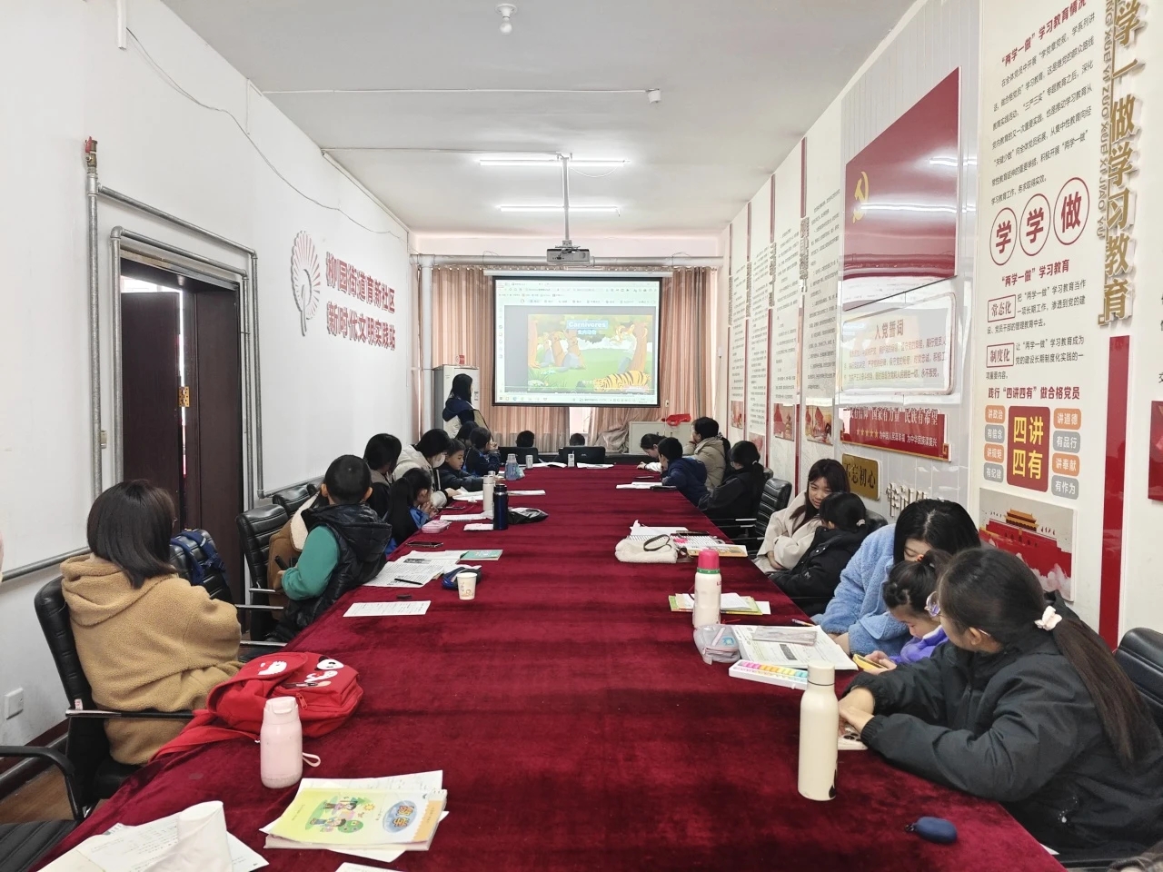 活动现场气氛热烈非凡,精心准备的图片和视频成功吸引小朋友们的目光,他们目不转睛,聚精会神地聆听着每一个知识点。互动提问环节,小朋友们热情高涨,高高举起小手踊跃作答,眼神中满是对新知识的渴望。随后,活动进入趣味手工环节,志愿者带领小朋友们观看教学视频,学习用折纸折小蜻蜓。
