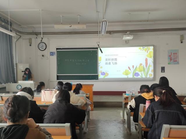 同学们围绕植物主题,充分发挥想象力,先用铅笔在卡纸上勾勒草图,每一笔每一划都展现对完美作品的追求。随后,同学们仔细地将胶水在草图上涂抹均匀,同学们沿着图案耐心排列、按压种子,小种子塑造细节,大种子填充色块、勾勒主体,种子经过同学们的一番操作,错落有致地组成不同姿态的植物图案,每一处都彰显着他们的细心。在规定时间内完成作品后,同学们按抽签顺序上台介绍自己的创作思路与灵感来源,评委对其进行评价和打分。