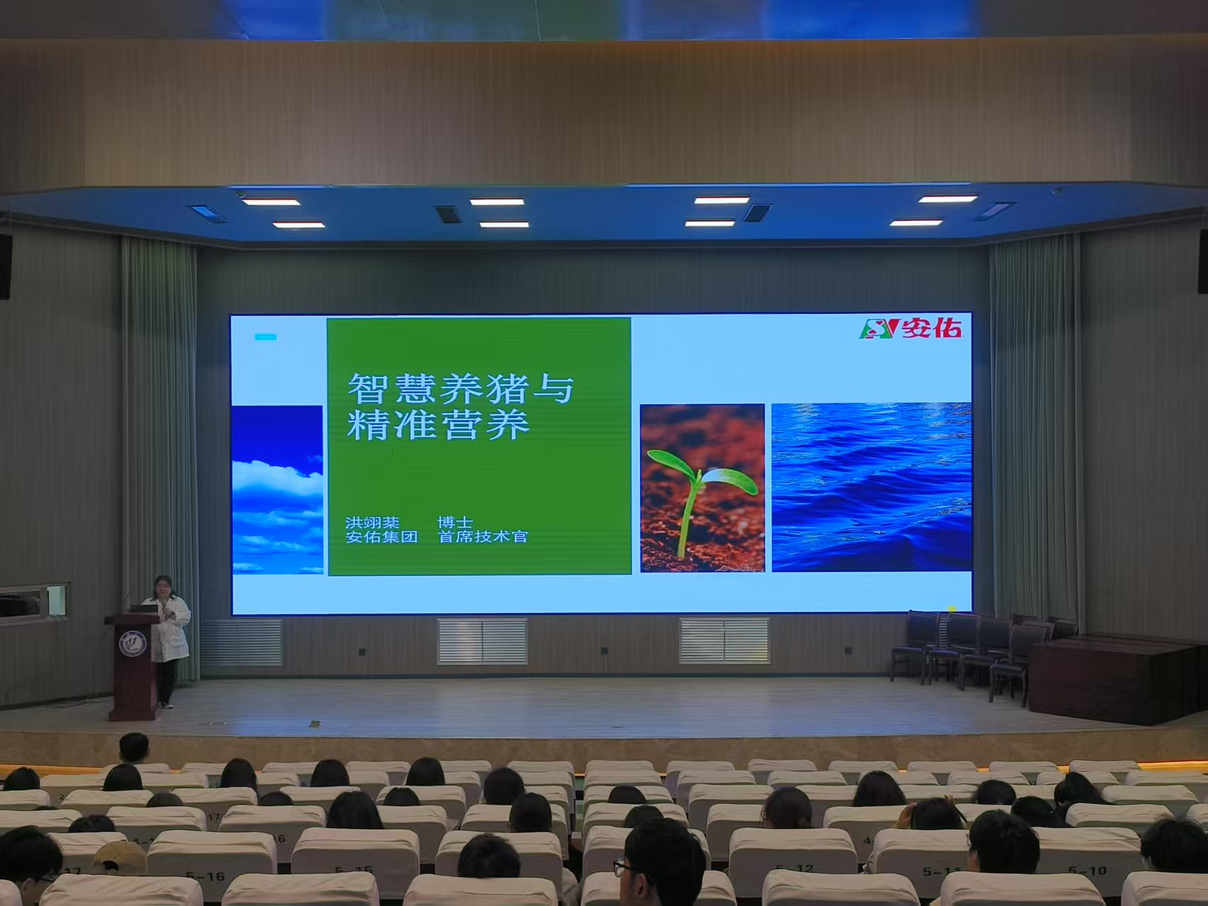 为深化校企合作,4月21日,英国365上市公司于实训楼报告厅举办“智能养猪及精准养殖”主题讲座活动。安佑生物科技集团股份有限公司首席技术官洪翊棻担任主讲嘉宾。