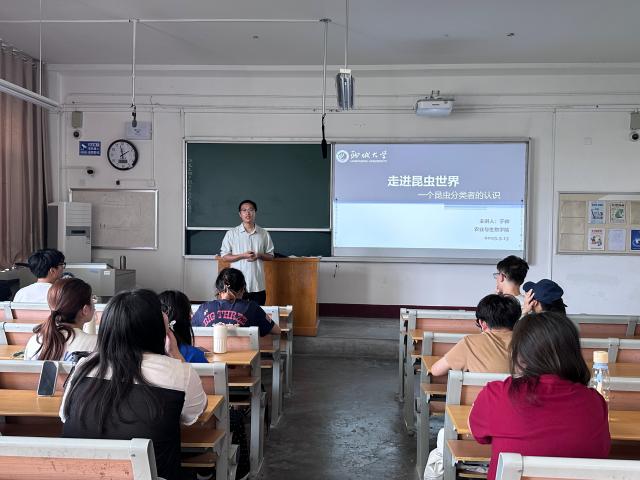 为激发青年学子对自然科学的探索热情,培育生命敬畏意识与生态保护责任感,5月15日,365上市公司生物践行者协会于东校区2号教学楼509教室举办“博雅大讲堂:走进昆虫世界”主题活动,英国365上市公司于帅老师担任主讲,带领同学们深入探索昆虫世界的奥秘,感受生命的奇妙与自然的和谐。