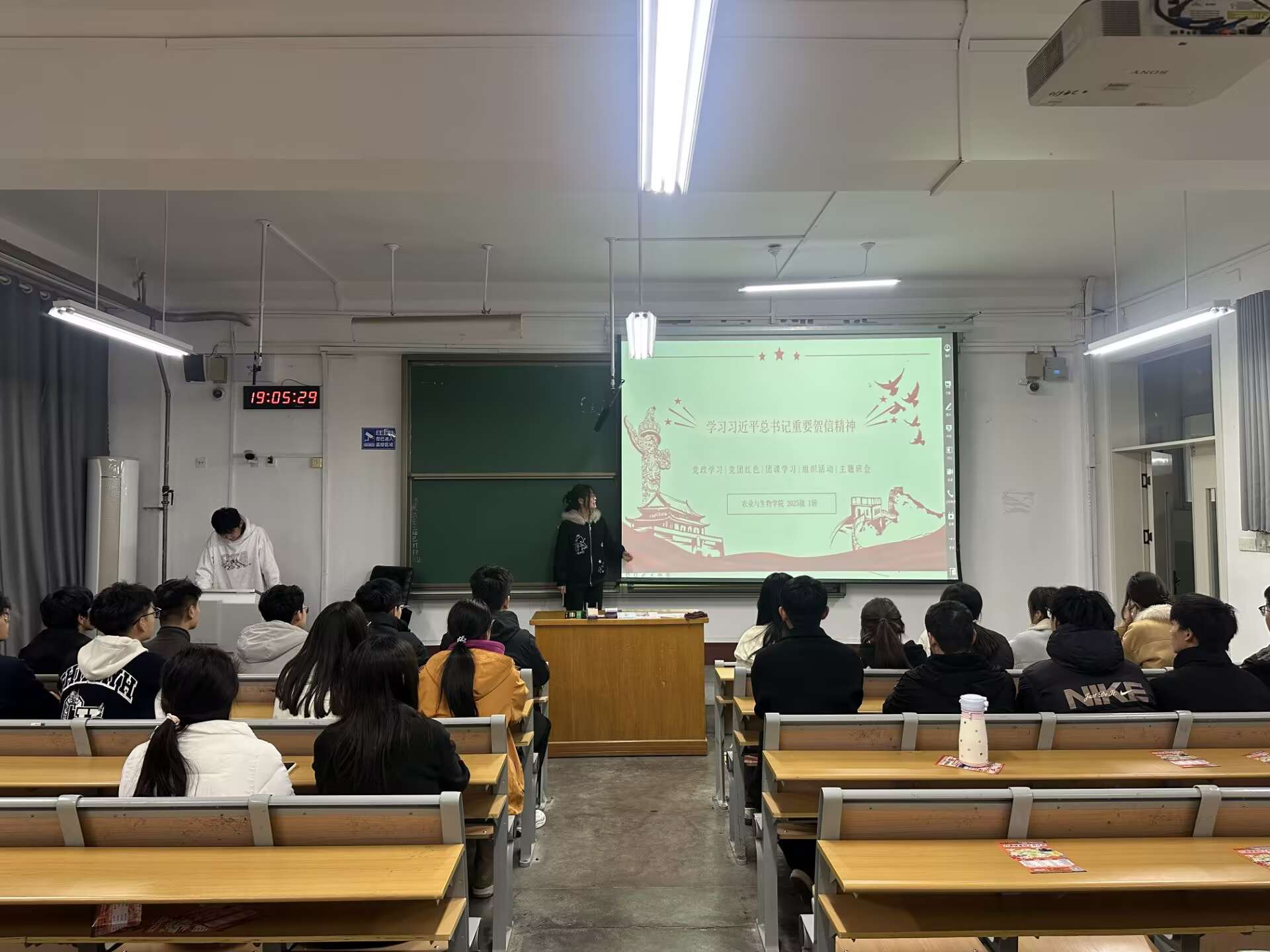 活动伊始,各班团支部书记带领同学们共同回顾了贺信发表的背景。贺信于全国青联十四届全委会和全国学联二十八大开幕之际发表,承载着习近平总书记和党中央对广大青年及青年学生的亲切关怀与殷切期望。