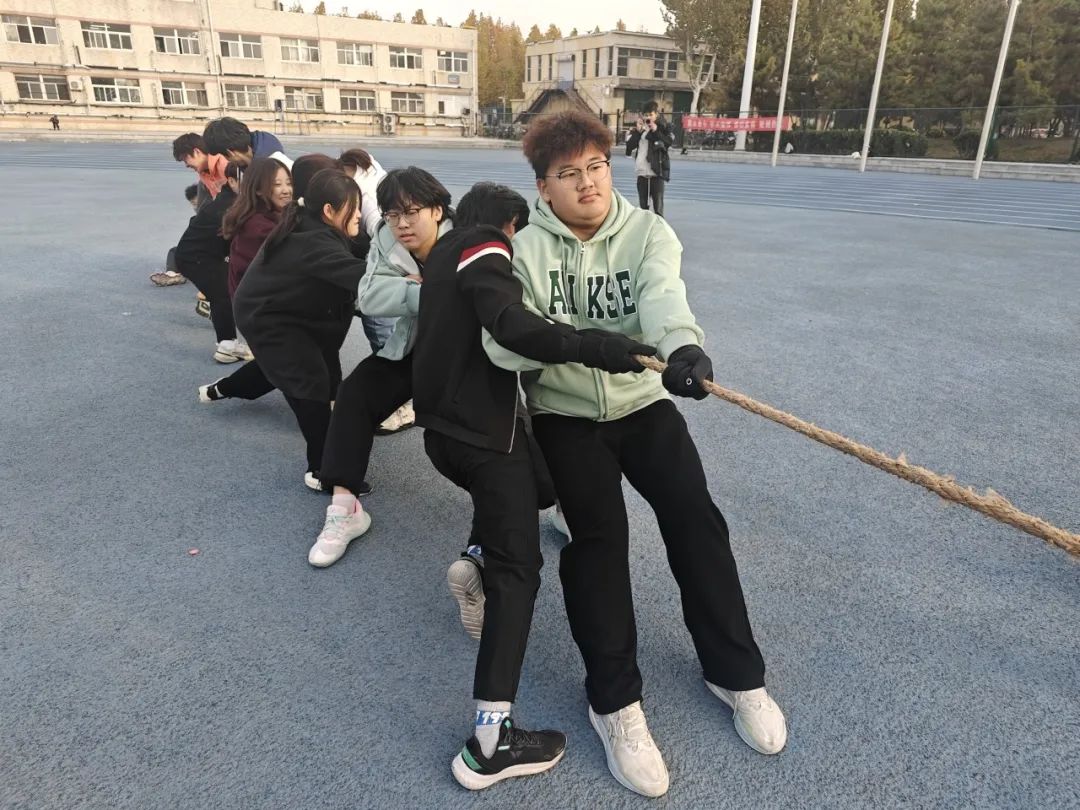 我院还于11月17日在田径场举办了“强身健体,奋力拔河”活动,参赛者们团结协作,灵活调整技巧和战术,每一支队伍都拿出了永不服输的精神和坚韧不拔的意志,展现了独属于我院学子的精神面貌与风采。最终2班取得了第一名的优异成绩,8班获得第二名,10班获得第三名。