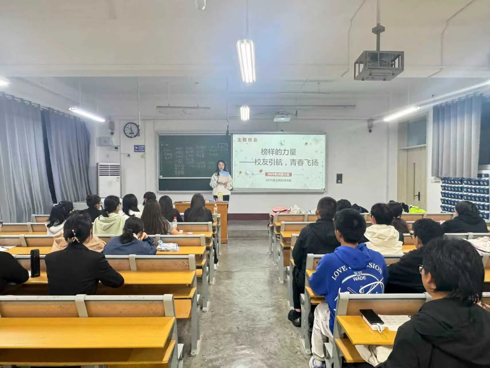 活动在学院优秀校友榜样视频播放中拉开帷幕。视频聚焦校友们在科研创新、基层服务等领域的卓越贡献,通过真实事迹让同学们深切感受到坚持、热爱与责任的分量。这些“远方榜样”的故事不仅让同学们深刻感悟到专业价值,还激发了大家向榜样看齐、追求卓越的内在动力。