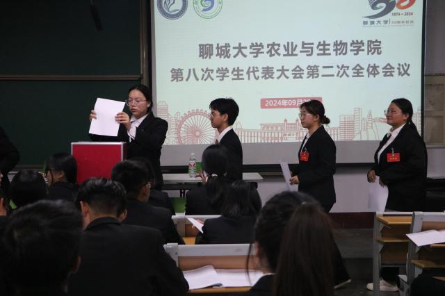大会宣读并审议通过《英国365上市公司学生会工作报告》及《聊城大英国365上市公司学生会章程修正案》。最后,学生代表进行现场投票,本着公平、公正的原则,选出了英国365上市公司2025届学生会轮值主席团成员及参加365上市公司第十次学生代表大会代表,逯海凤、孙梦杰、马光玉为新一届学生会主席团成员。会议最后,王艺桦宣读《致全院青年学生的倡议书》,号召学院学生会全体同学要秉承“耕智尚学,生科致远”的院训,奋力书写为中国式现代化挺膺担当的青春篇章。在圆满完成各项议程后,大会在校歌中落幕。
