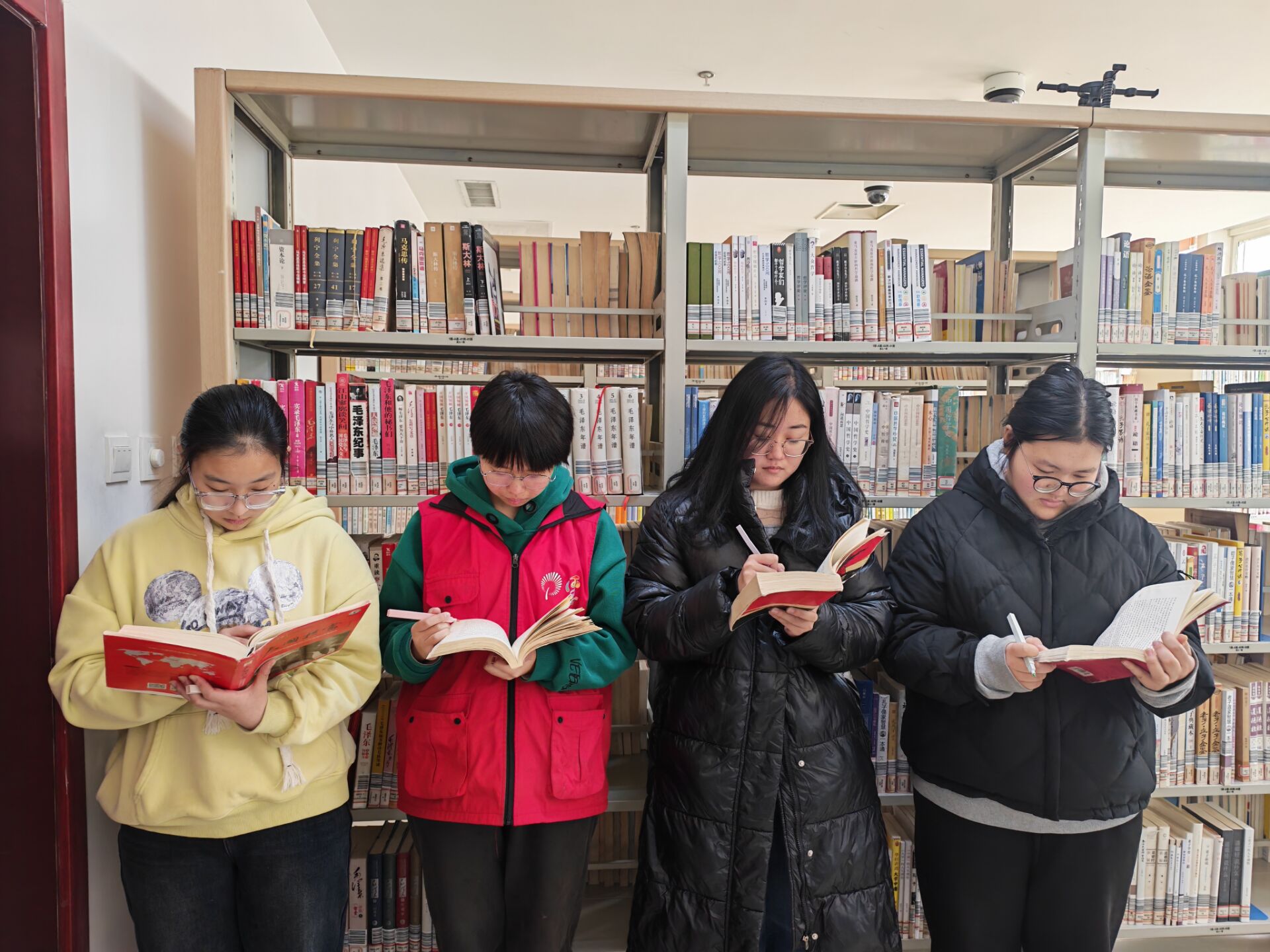 服务队选取了《可爱的中国》《红岩》等红色经典著作,以及《聊城革命史料汇编》等地方党史资料作为研读内容。在基地的红色文献阅览室内,队员们每日安排固定时间专注阅读,并在书页旁随读随记、深入批注。例如,读到方志敏烈士“到处都是活跃的创造,到处都是日新月异的进步”的深情展望时,队员们结合“中国式现代化”的时代内涵写下思考;整理江姐在狱中传递情报、坚持斗争的感人事迹时,大家共同提炼出“忠诚、坚韧、奉献”的精神品质。从经典著作到地方史料,从个人批注到集体研讨,队员们在交流中坚定初心、凝聚共识,更加体会到今日幸福生活的来之不易,纷纷表示要传承红色基因、赓续精神血脉,以勤学笃行的姿态勇担时代使命。