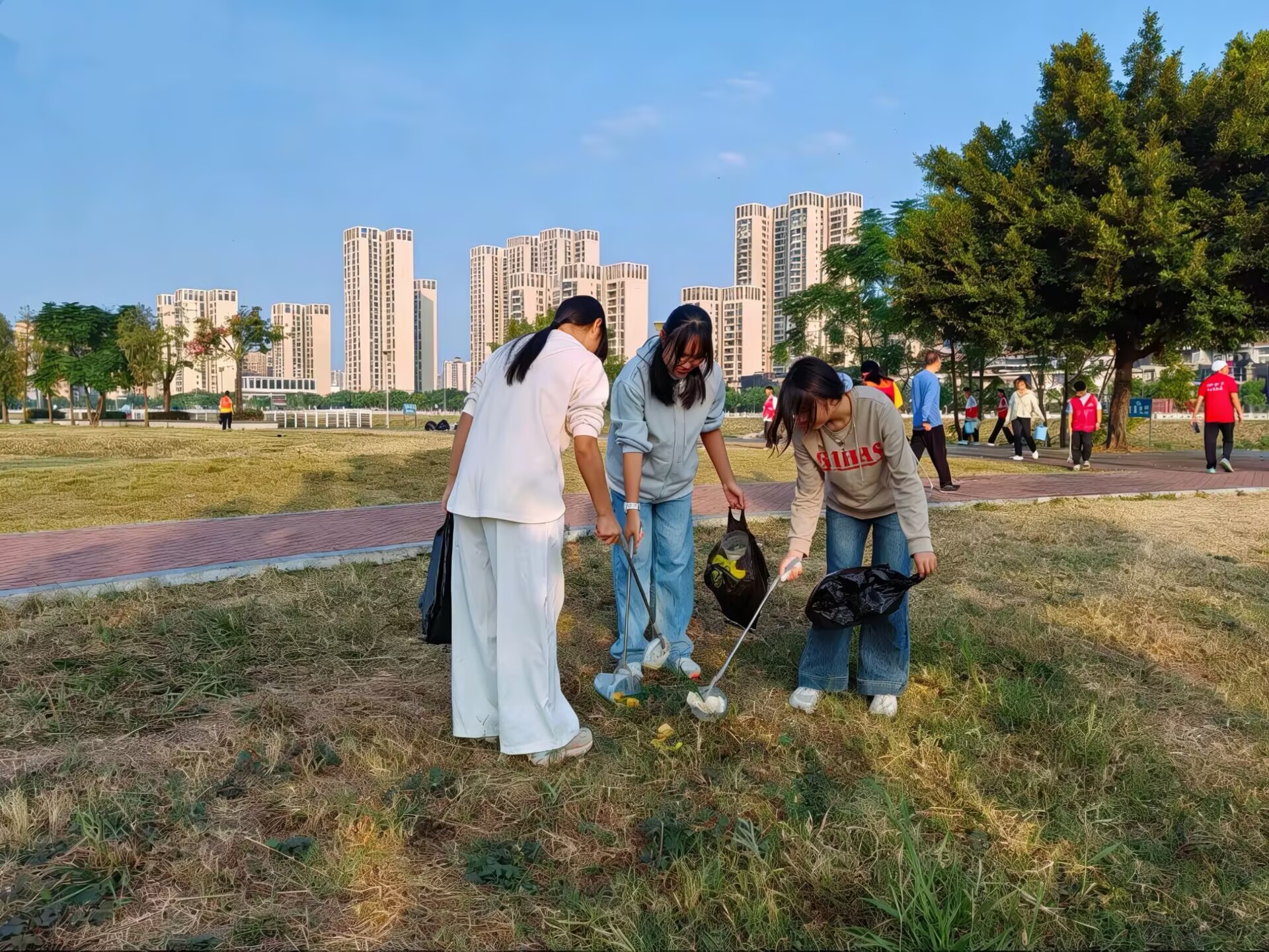 针对村路两侧及河道沿岸的白色垃圾,队员们沿河岸步道展开清理,将草丛中、水面上的塑料袋、塑料薄膜等捡拾归类,统一装入分类垃圾袋,转运至指定回收点。清理过程中,大家分工协作、细致排查,不放过卫生死角与隐蔽区域,同时规范整理村内垃圾投放点,引导垃圾规范投放。